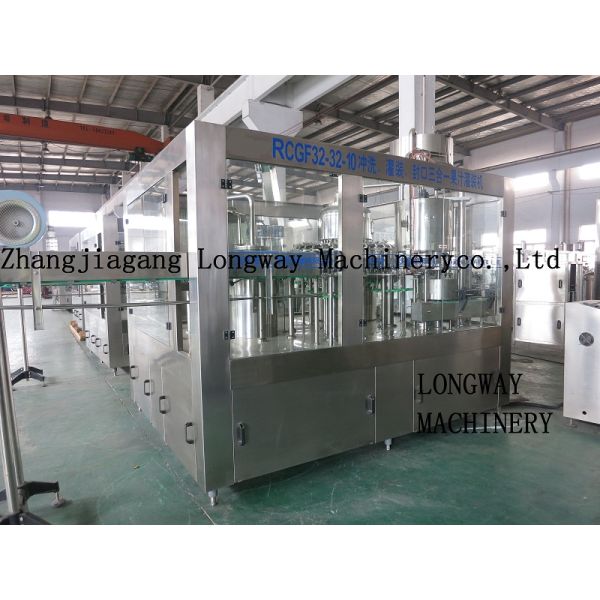 Standard 3-in-1 monoblock for PET bottles rinsing, hot filling and capping. It is applicable to fruit juice, tea beverage, functional beverage, etc with 2000-20000BPH capacity. According to the special production condition, another sterilizing rinsing module could be added, that is 4-in-1 monoblock. The system has fully considered the beverage's characteristics (such as the frothing of the tea drink and mixed juice) and the technical requirement of the hot filling.